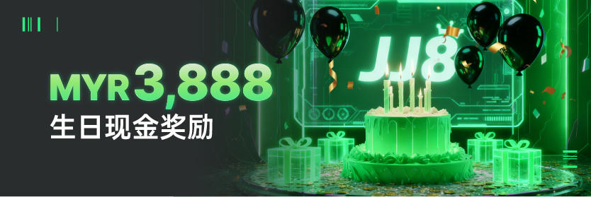 与 JJ8 一同欢庆生日,尊享高达 MYR 3,888 的现金奖励